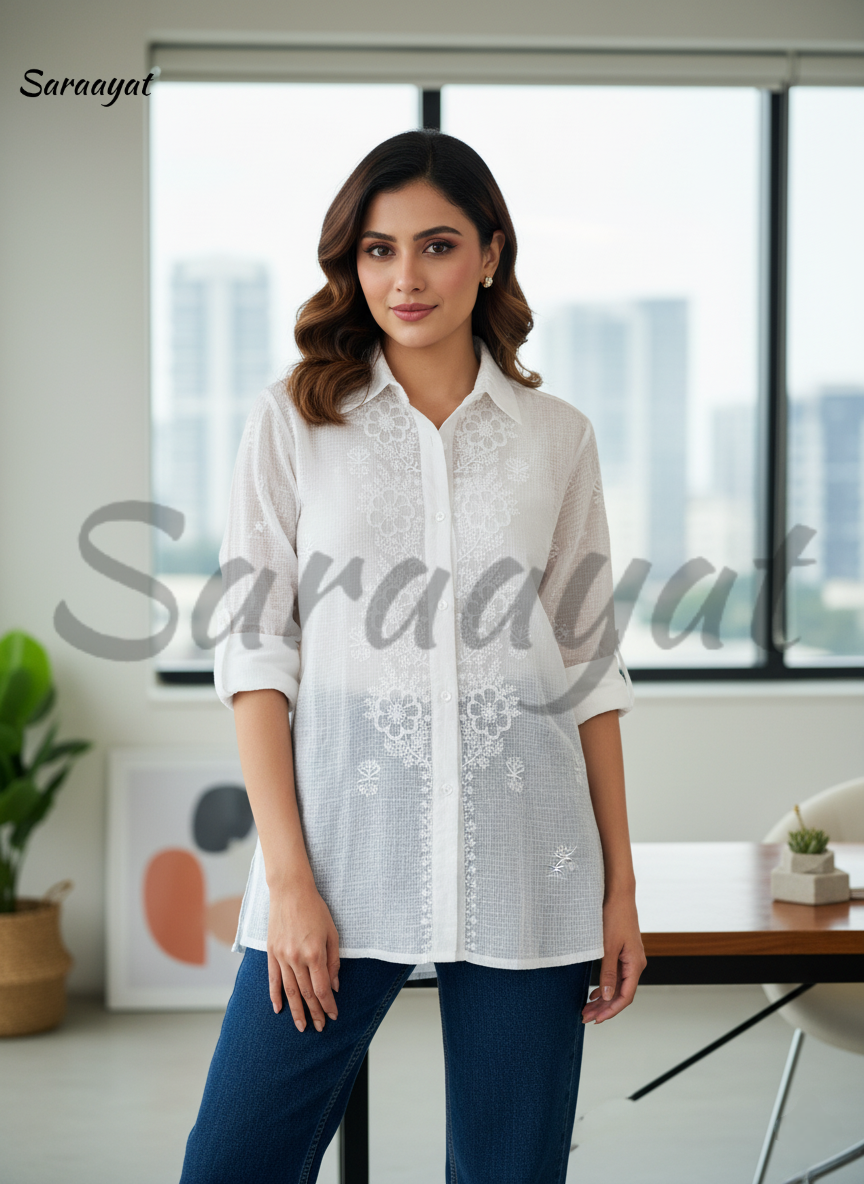 Redefine elegance with this beautifully crafted Lucknowi Chikankari hand-embroidered shirt, stitched to perfection on the finest kota cotton fabric. Known for its airy and lightweight texture, kota cotton ensures a comfortable fit while maintaining a polished and sophisticated look.